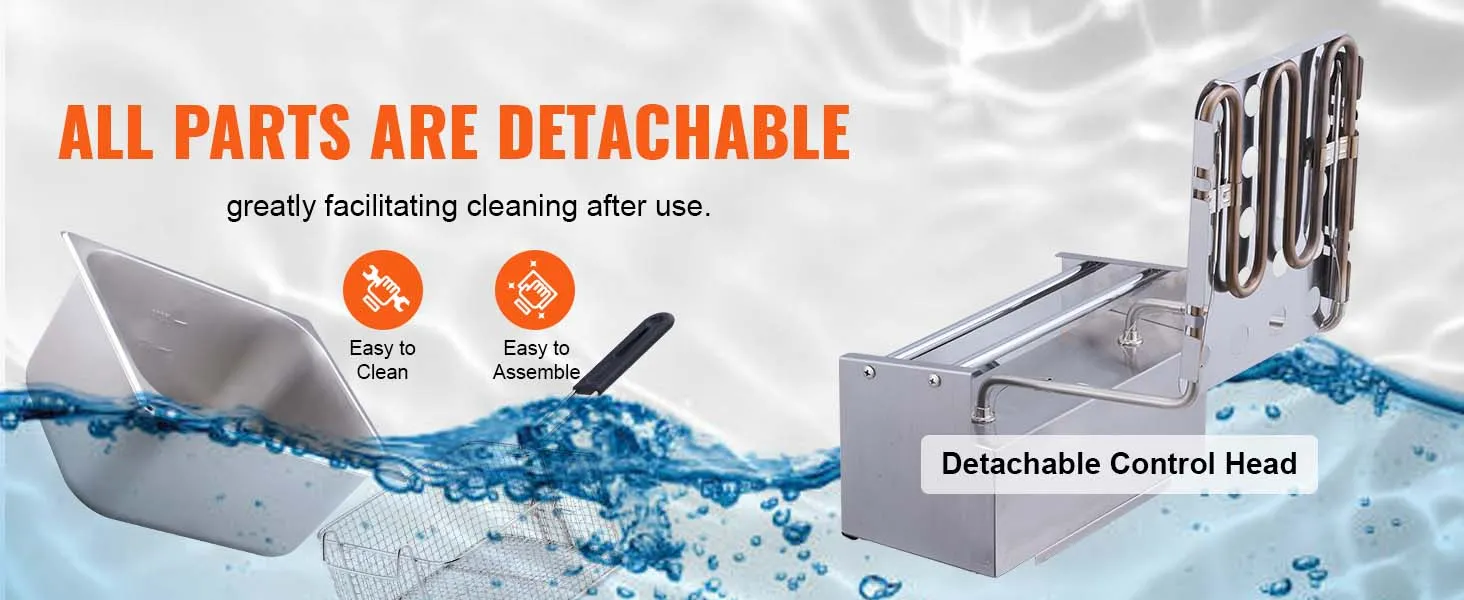 Limpieza fácil y sencilla: todos los componentes de esta freidora son fáciles de levantar, incluidos los tanques de aceite. Y los tubos calefactores se pueden voltear para facilitar la limpieza después de cada uso. Además, el exterior de acero inoxidable es muy fácil de limpiar.