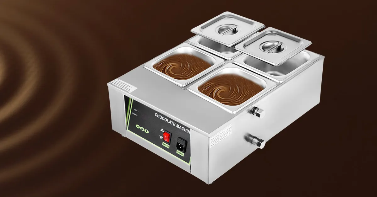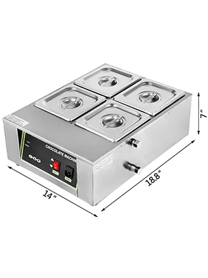 Este fantástico fundidor de chocolate eléctrico está diseñado para calentar, derretir y templar chocolate para hacer un chocolate suave y sedoso y crear deliciosos postres.