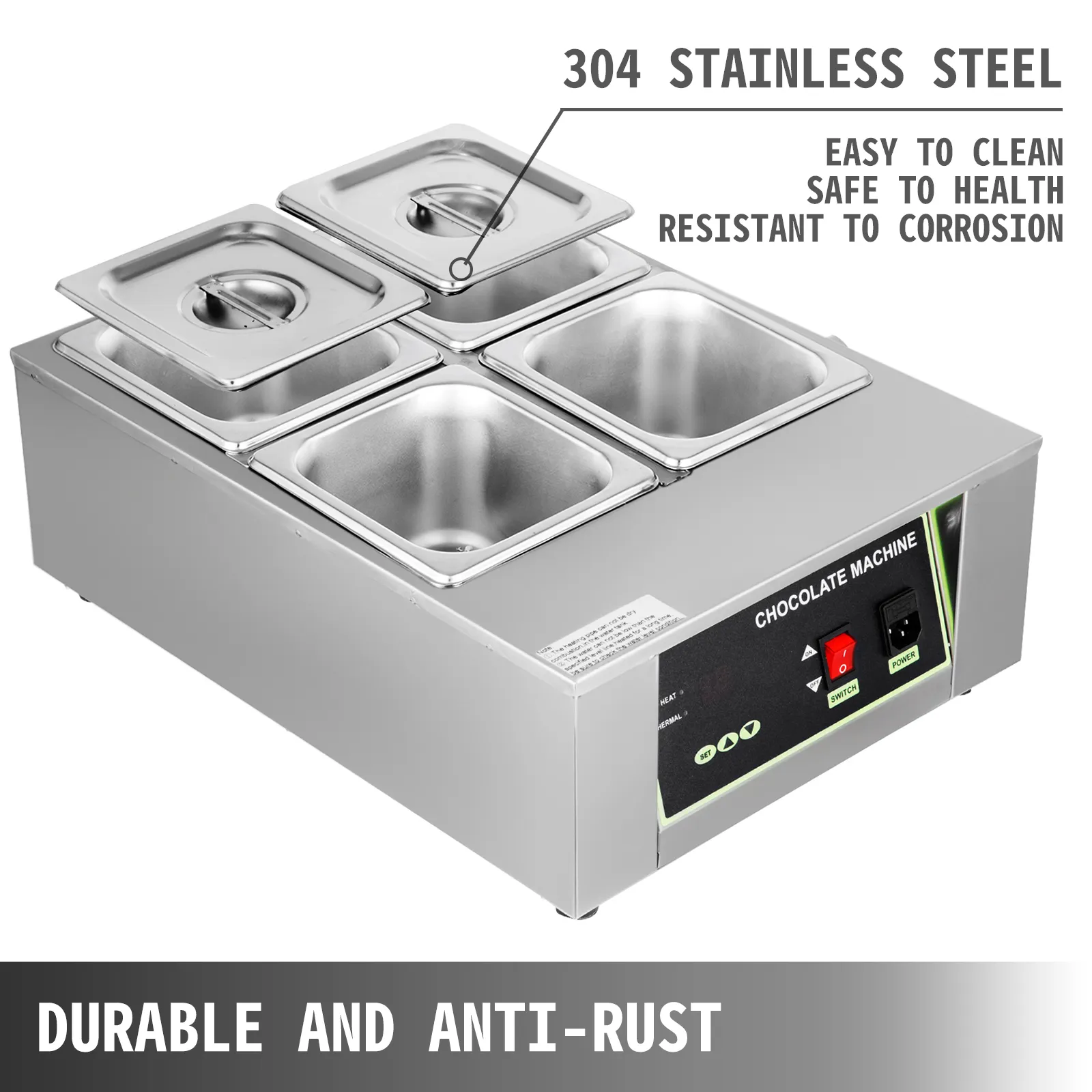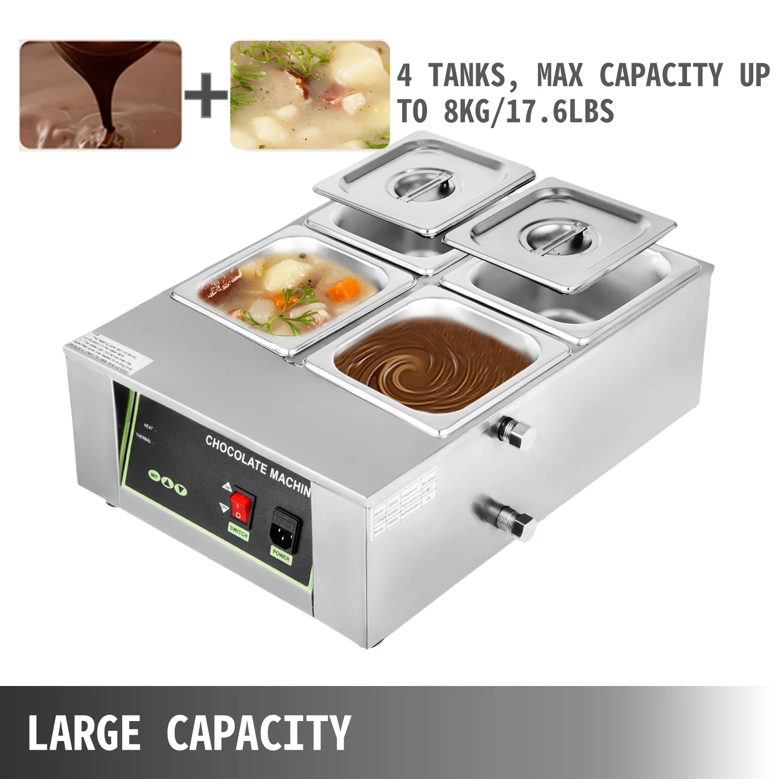 Funciona bien como calentador de alimentos. Ampliamente utilizado en el hogar, hoteles, restaurantes, panaderías, cafeterías, chocolaterías, fuentes de chocolate, etc. Excelente para calentar y derretir chocolate, crema, leche, velas hechas a mano, jabón hecho a mano, cera de belleza, etc.