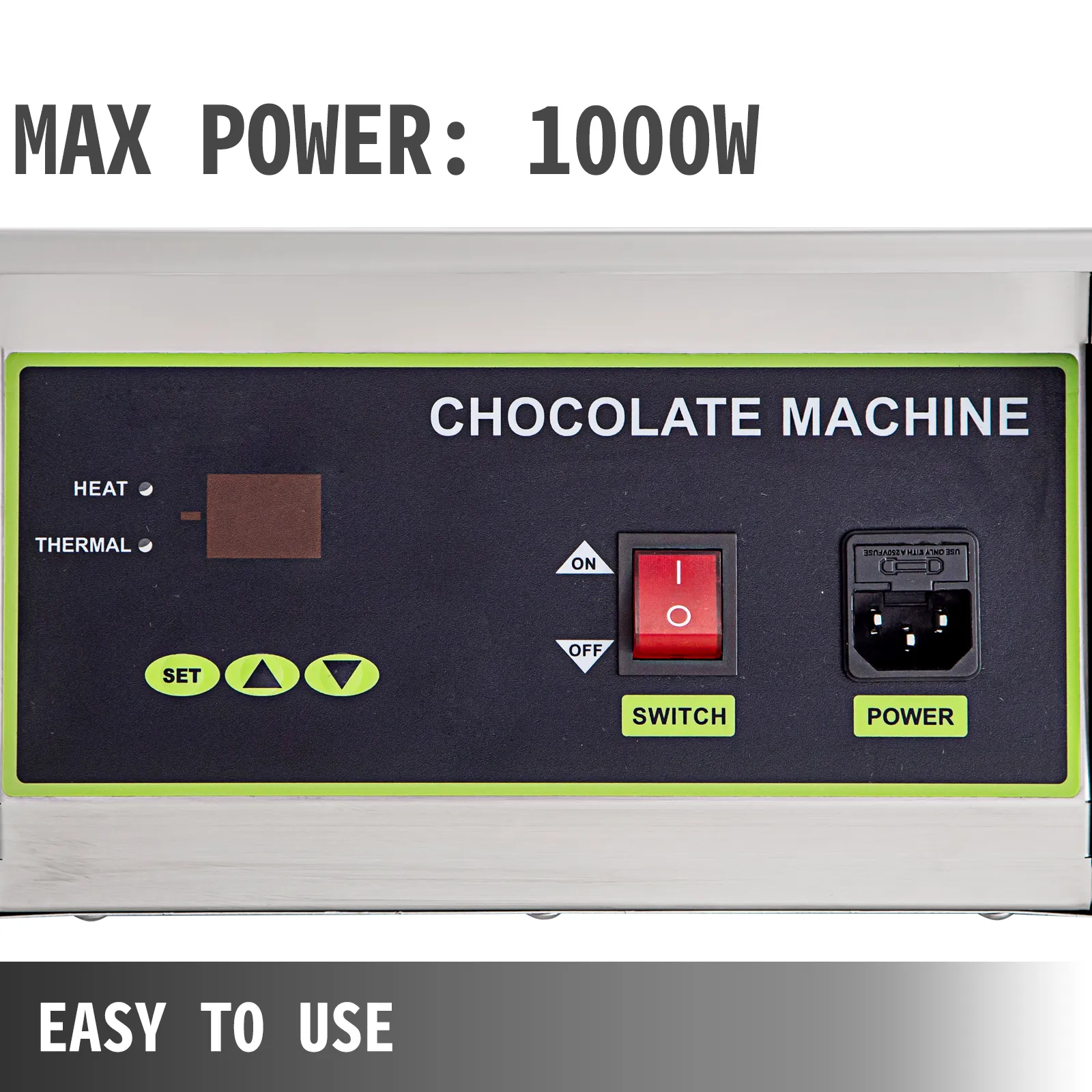 La única operación que necesita hacer es configurar la temperatura de calor y la temperatura térmica, y el interruptor de encendido/apagado. Ajuste la temperatura en el grado que desee y prepárese para disfrutar de un delicioso chocolate.