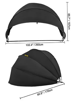 Tamaño: 102,4"x66,9"x65,7"/260x170x167 cm. Nuestro refugio brinda protección de cobertura total contra el sol y la lluvia para motocicletas, ciclomotores, bicicletas, etc. Simplemente estacione y cúbrase. Ideal para uso en exteriores.