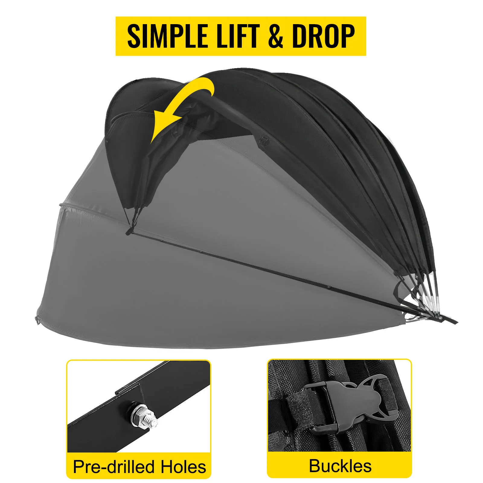 El garaje para motocicletas adopta un marco de fibra de vidrio con un diámetro de 9,5 mm / 0,37 ", que no se oxida fácilmente y puede mantener perfectamente su forma.