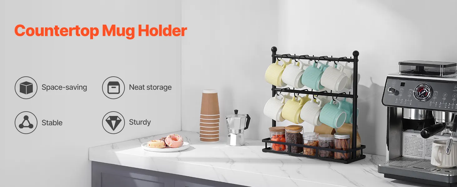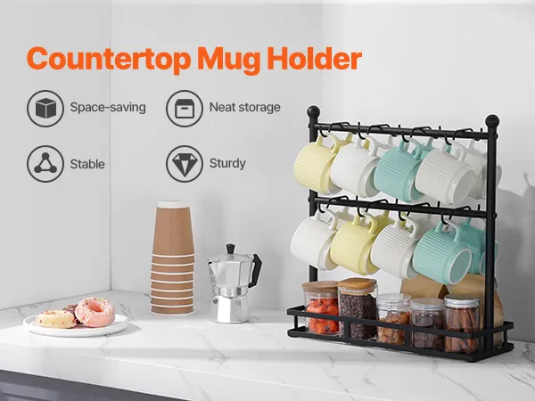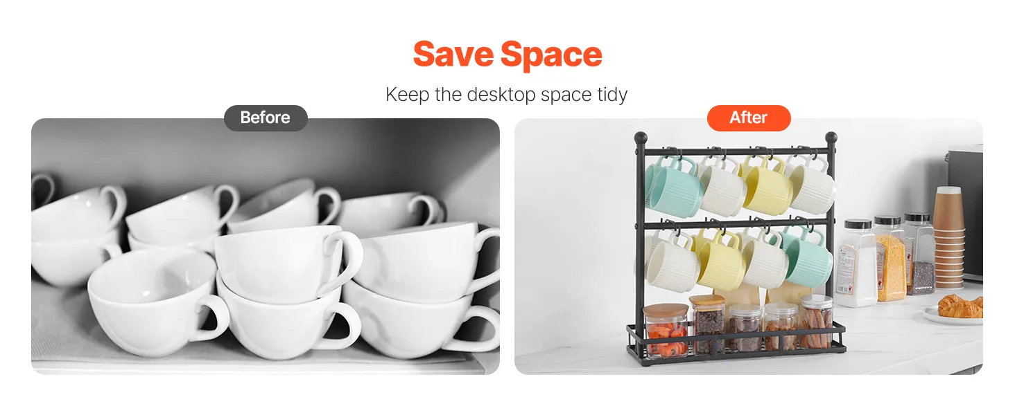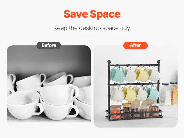 El soporte para tazas de café te ayuda a aprovechar al máximo tu espacio y a colocarlo libremente en tu oficina, cocina o casa. Ayuda a organizar y guardar tazas de café, así como accesorios y más artículos, manteniendo tu mostrador ordenado y prolijo.