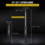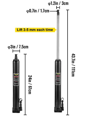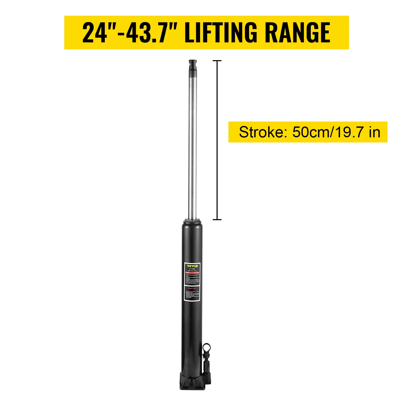 El gato de ariete largo cuenta con un rango de elevación de 24" a 43,7" con una amplia carrera de 19,7". ¡Levante su polipasto con facilidad!