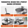Máquina eléctrica para hacer conos de helado VEVOR, modelo comercial de 1230 W, incluye molde antiadherente de acero inoxidable para rollitos de huevo, control de temperatura y tiempo, asa, ideal para restaurantes, panaderías, bares y uso doméstico.
