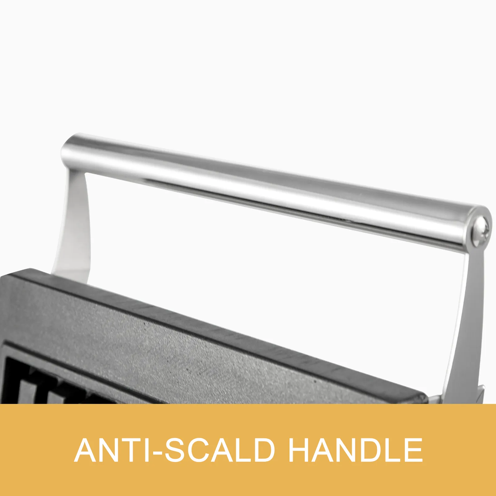 Mango grueso de acero inoxidable adjunto para un fácil agarre y un uso sin esfuerzo. Un buen material de disipación de calor asegura que su temperatura no sea demasiado alta. Protege al usuario de quemaduras.