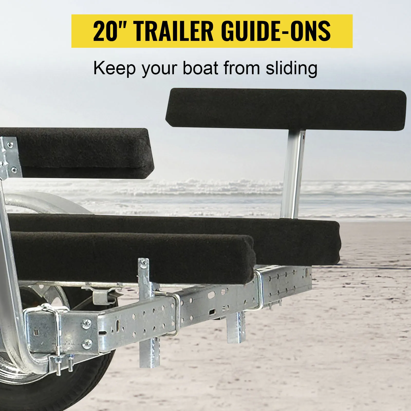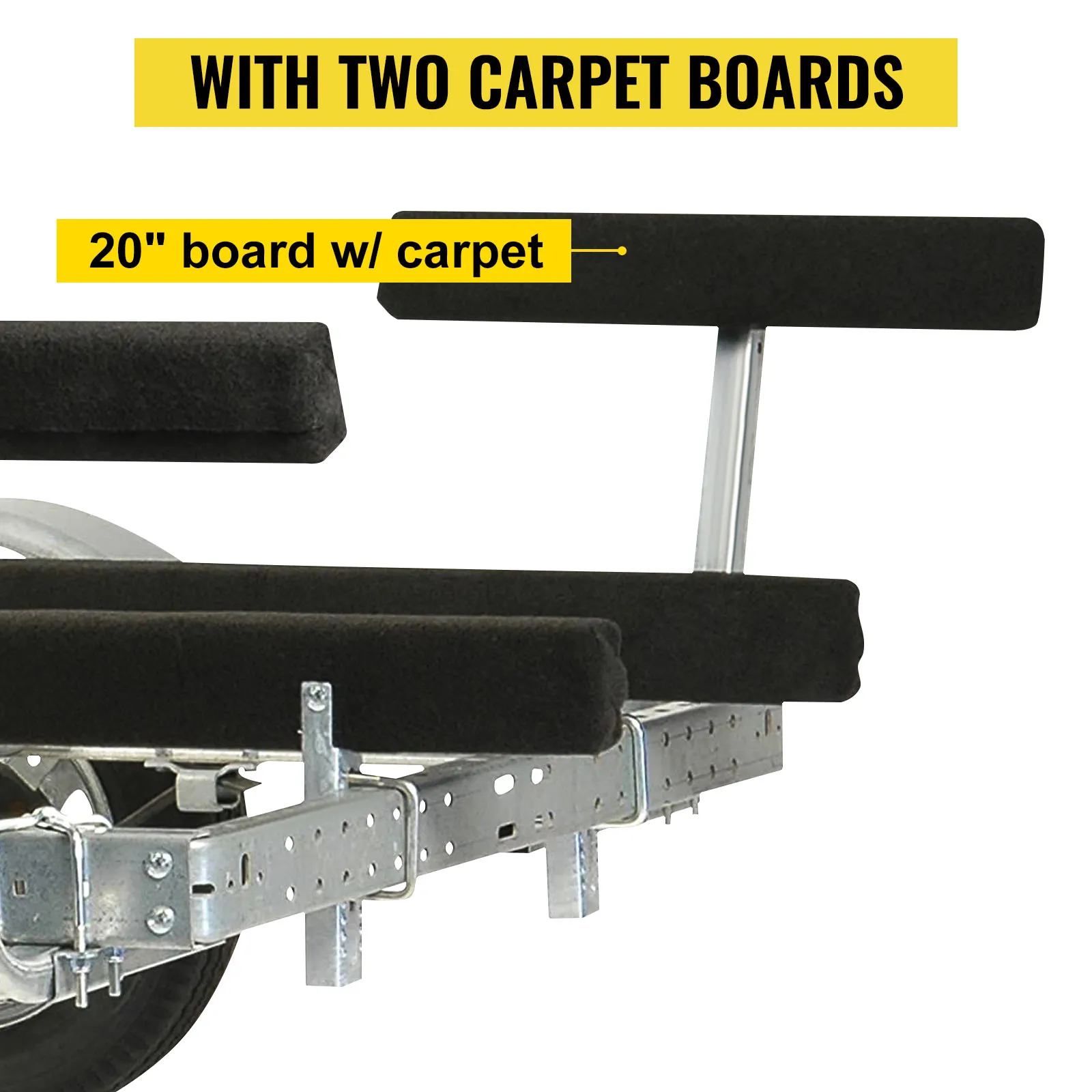 Estas guías para remolques VEVOR cuentan con un par de soportes de acero resistentes, cada uno de 3 mm de espesor, y dos tablas de 20" cubiertas con alfombra de alta calidad. Diseñadas para facilitar la carga sin esfuerzo de la embarcación, estas guías son imprescindibles para cualquier propietario de una embarcación.
