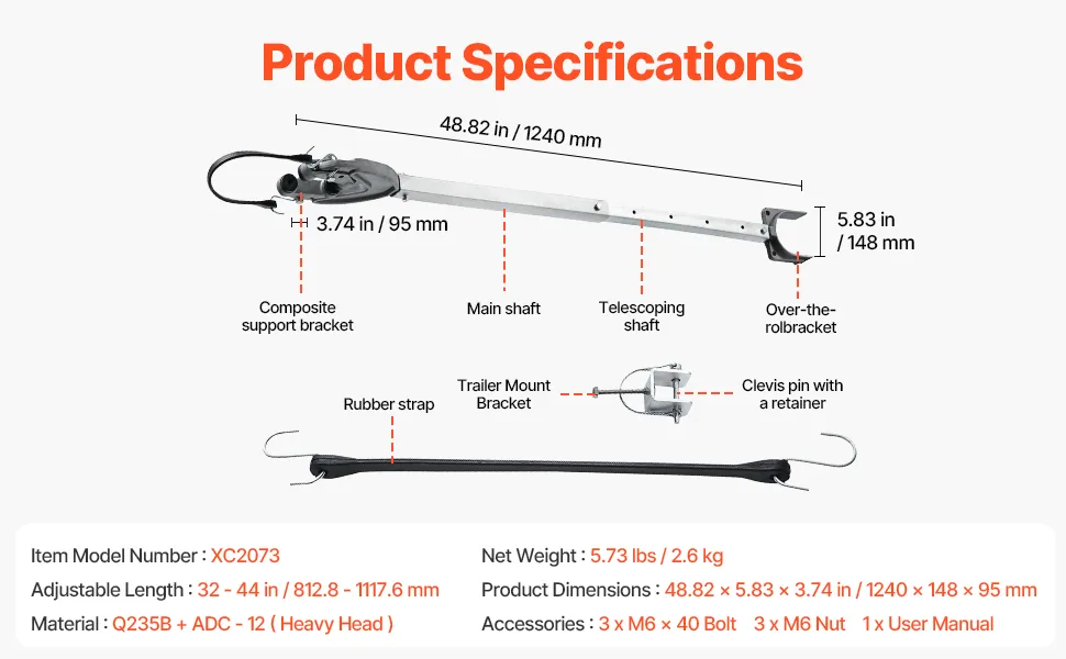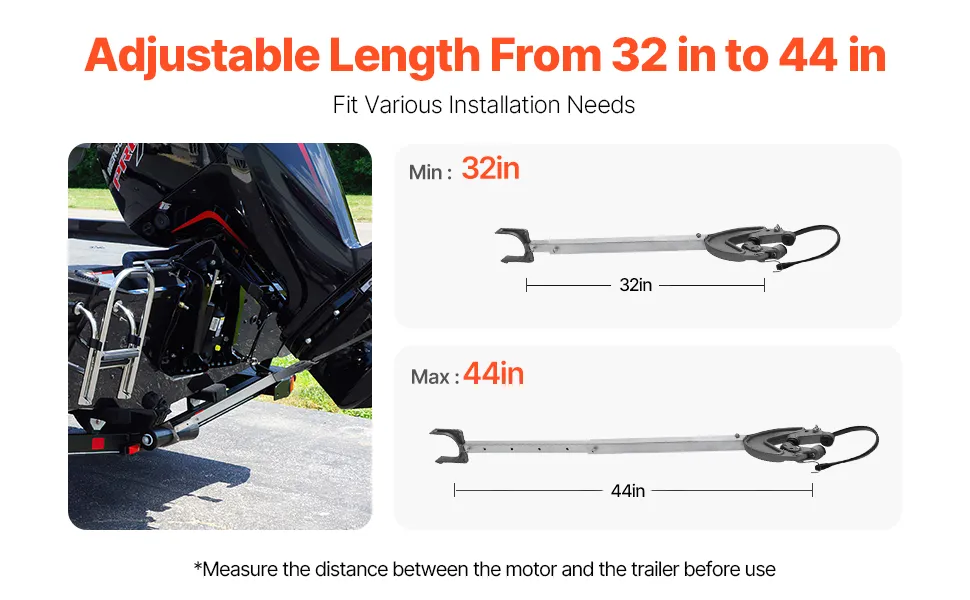 Longitud ajustable: la longitud del protector de espejo de popa se puede ajustar de 32 a 44 pulgadas, lo que se puede utilizar para una amplia gama de remolques de motor. Nota: puede medir la distancia entre el motor y el remolque antes de usarlo.