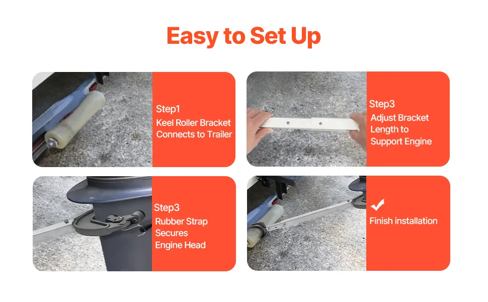Fácil de instalar: según la forma del riel del remolque, puede optar por perforar agujeros y usar el soporte de montaje del remolque para ensamblar, o conectar y fijar directamente el soporte del rodillo. La instalación es simple y puede ser realizada por una sola persona.