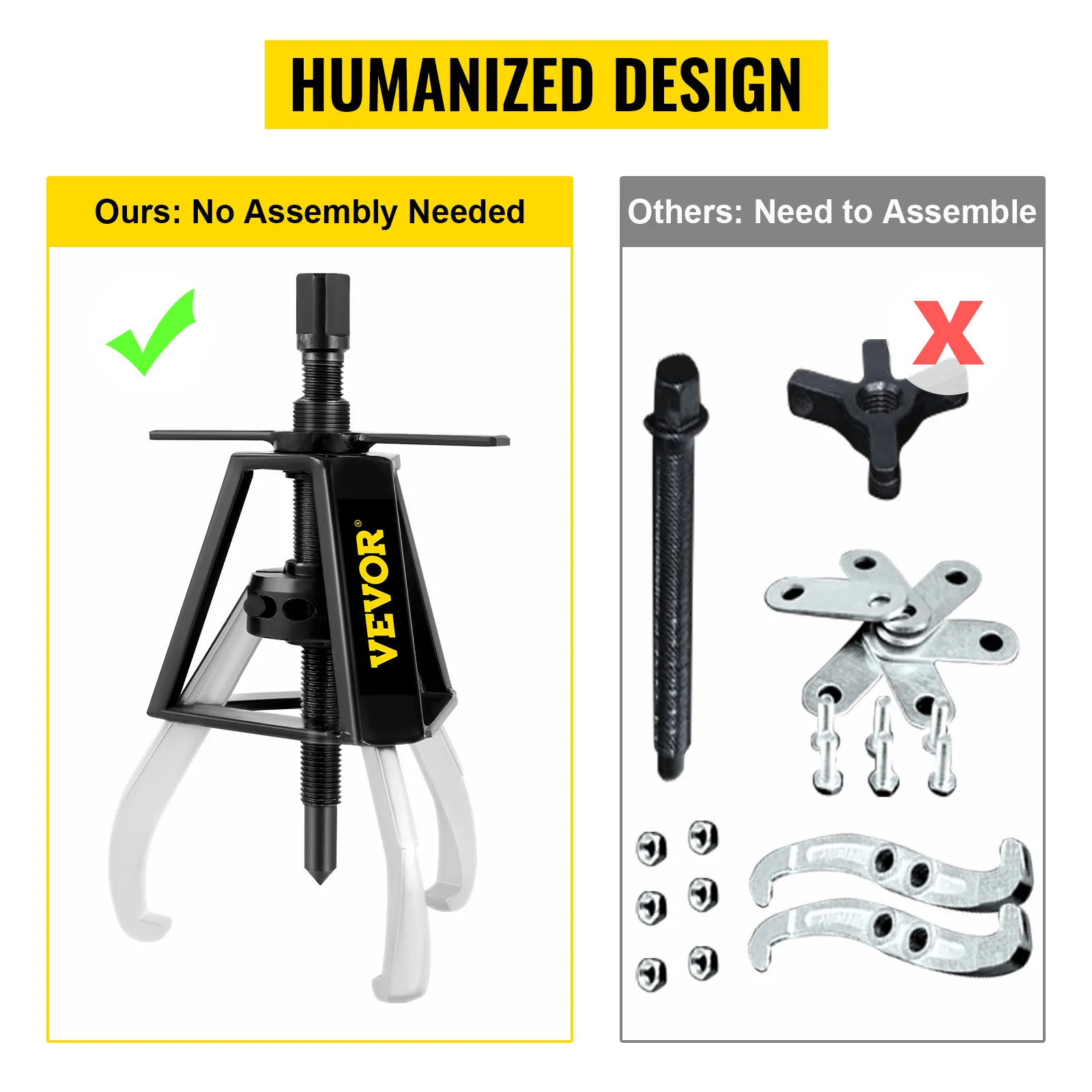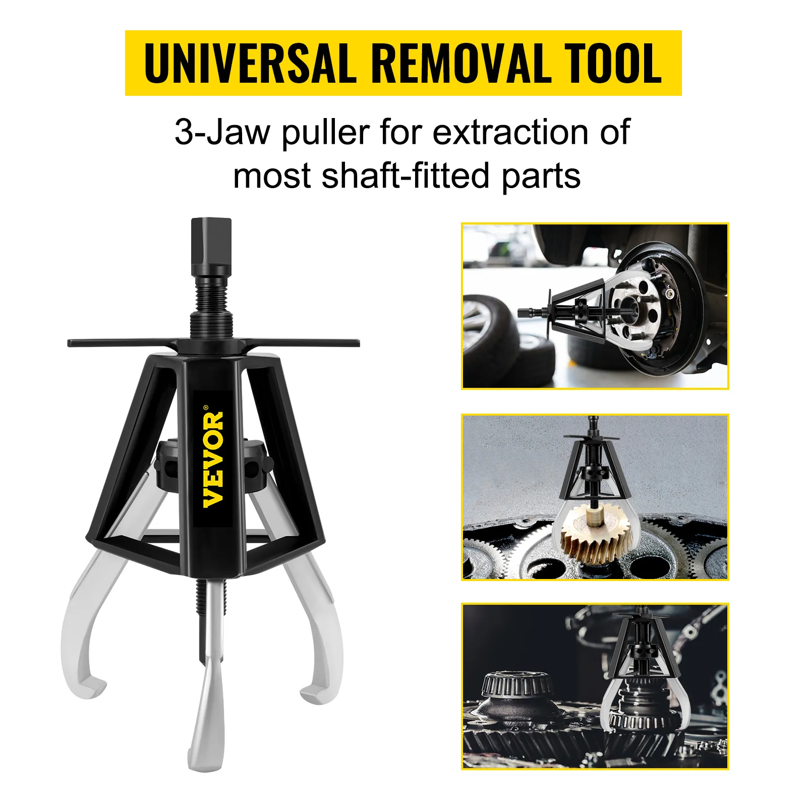 - Nuestro extractor de herramientas manual puede quitar sin esfuerzo las bridas, los engranajes y los cojinetes con daños menores. La mordaza guía de la jaula está diseñada para una configuración rápida y un contacto sólido. Las mordazas cónicas permiten un agarre más fácil y un mejor acceso a áreas estrechas. El extractor de engranajes de VEVOR puede servir eficazmente al mecánico principiante o profesional durante mucho tiempo. ¿Que estas esperando? Obtenga agarre y una tonelada de potencia con su nuevo extractor de engranajes de 3 mordazas.