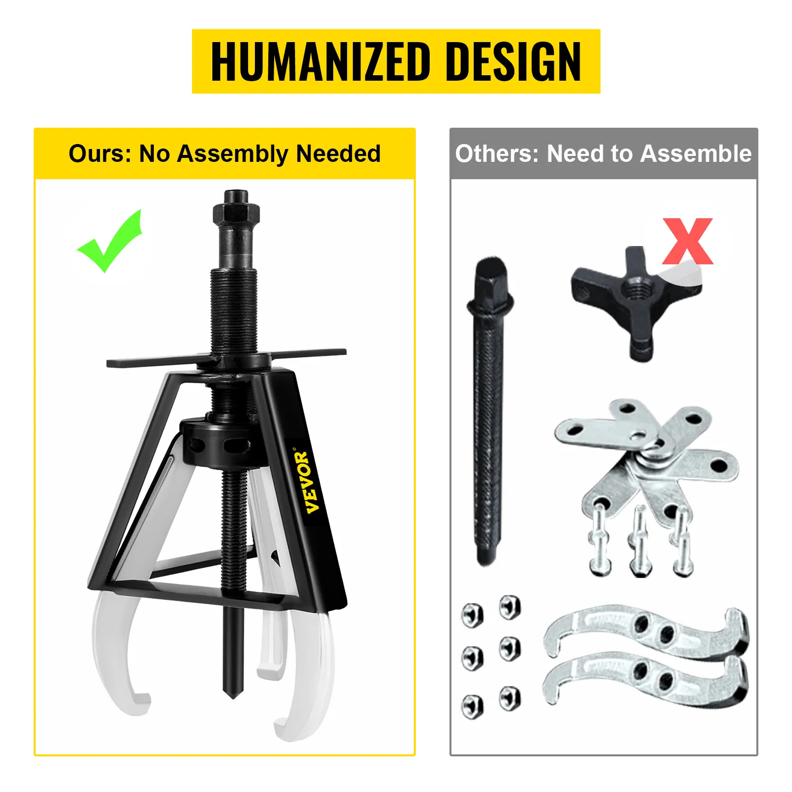 - Nuestro extractor de herramientas manual puede quitar sin esfuerzo las bridas, los engranajes y los cojinetes con daños menores. La mordaza guía de la jaula está diseñada para una configuración rápida y un contacto sólido. Las mordazas cónicas permiten un agarre más fácil y un mejor acceso a áreas estrechas. El extractor de engranajes de VEVOR puede servir eficazmente al mecánico principiante o profesional durante mucho tiempo. ¿Que estas esperando? Obtenga agarre y una tonelada de potencia con su nuevo extractor de engranajes de 3 mordazas.