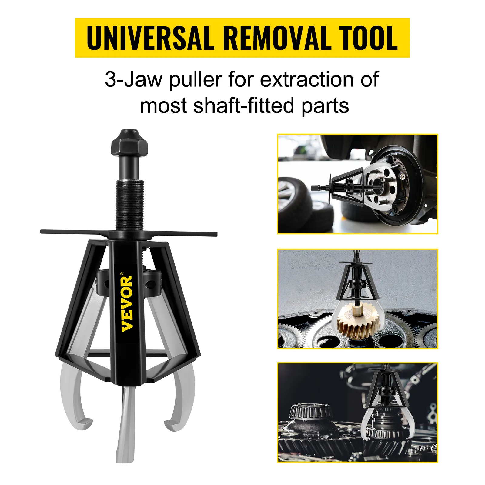 - Nuestro extractor de herramientas manual puede quitar sin esfuerzo las bridas, los engranajes y los cojinetes con daños menores. La mordaza guía de la jaula está diseñada para una configuración rápida y un contacto sólido. Las mordazas cónicas permiten un agarre más fácil y un mejor acceso a áreas estrechas. El extractor de engranajes de VEVOR puede servir eficazmente al mecánico principiante o profesional durante mucho tiempo. ¿Que estas esperando? Obtenga agarre y una tonelada de potencia con su nuevo extractor de engranajes de 3 mordazas.
