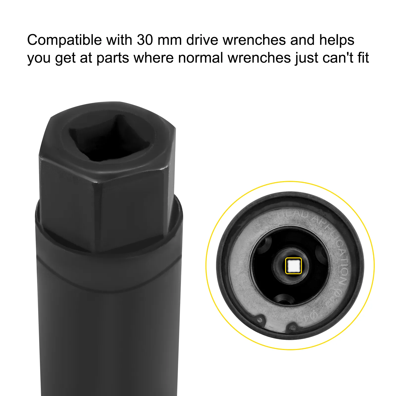 Es compatible con un dado de 30 mm unido a un trinquete o barra rompedora. Un cabezal universal sin cambiar adaptadores adicionales, ahorrando tiempo y dinero.