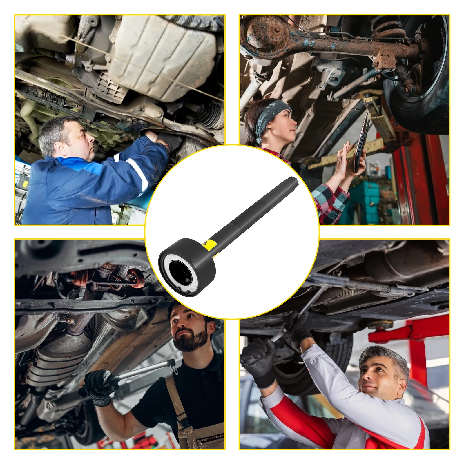 Está diseñado para principiantes y mecánicos profesionales. La herramienta de tirante interior facilita la extracción y la instalación sin desmontar el soporte. Se adapta a tirantes de 35-45 mm sin adaptadores intercambiables adicionales y es compatible con llaves de 30 mm. Le permite atender de manera eficiente automóviles, camionetas, SUV y más.