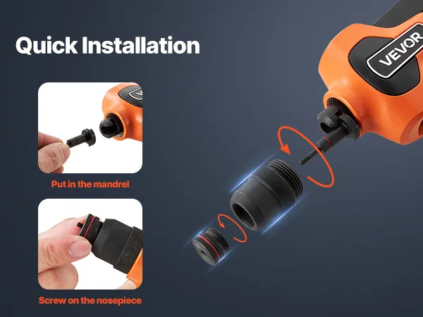 Desde la perforación hasta la fijación, esta herramienta remachadora hace que cada acción parezca intuitiva: no se necesita experiencia, solo resultados suaves y satisfactorios en todo momento.