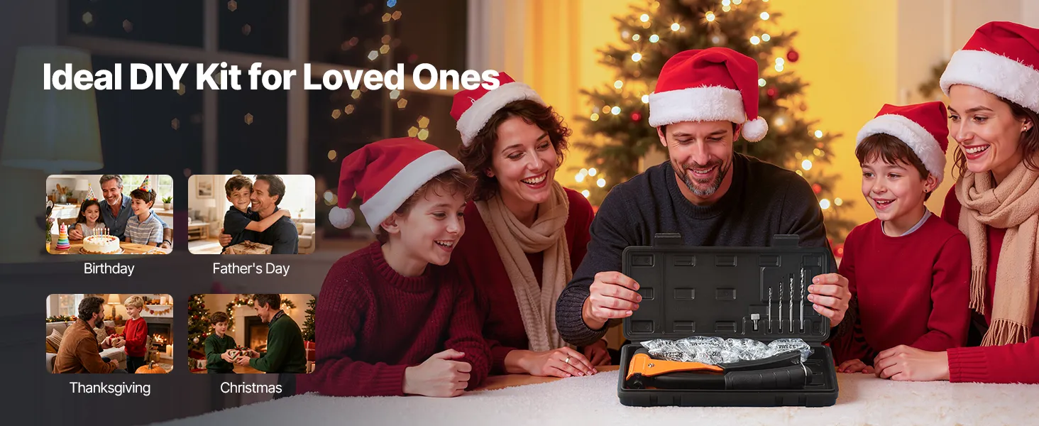 Un juego de remachadoras pensado para cualquier persona que ame construir, reparar o crear: ideal para cumpleaños, días festivos o como primer kit de herramientas para el hogar.