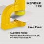 Con suficiente tonelaje, este abridor de agujeros hidráulico puede abrir fácilmente agujeros en la placa de hierro más gruesa de 0,06"/1,5 mm y en la placa de acero inoxidable más gruesa de 0,04"/1 mm.