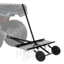 Desbrozadora de césped remolcable VEVOR de 40 pulgadas con 20 púas de acero flexibles, rastrillo para césped para vehículos todo terreno o cortacésped, rastrillo de césped remolcable con asa de elevación para césped de jardín o granja.