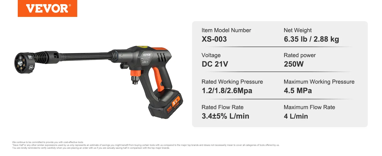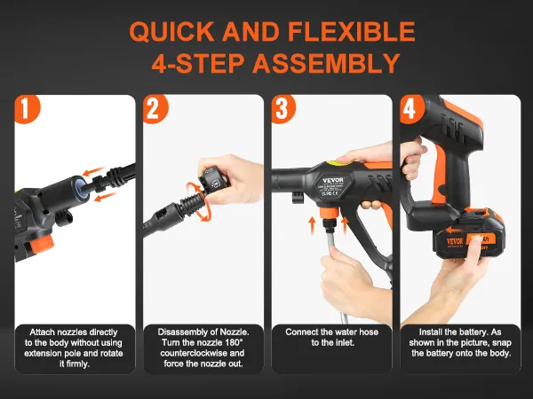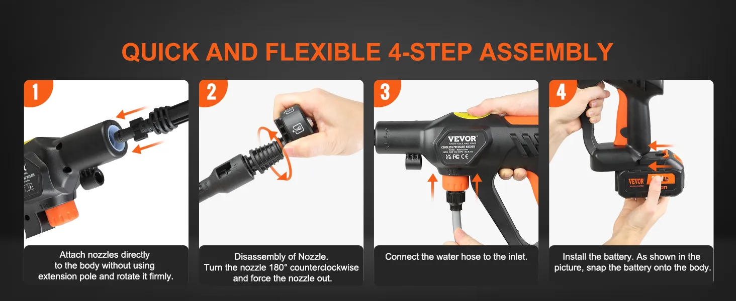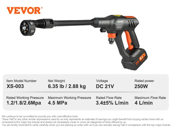 Batería de larga duración de 60 minutos: esta hidrolavadora inalámbrica incluye una batería de alta capacidad de 4,0 Ah y un cargador rápido certificado. La duración de la batería varía entre 20/40/60 minutos dependiendo de la configuración baja/media/alta. No hay necesidad de preocuparse por quedarse sin batería a mitad de la limpieza, experimente un nuevo reino de limpieza perfecta.