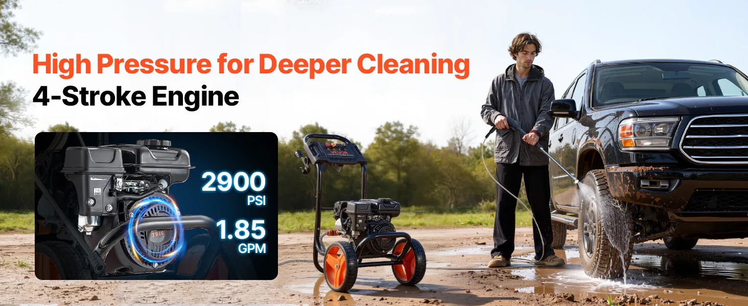 El potente motor de 4 tiempos proporciona un chorro de agua más rápido para una limpieza más profunda de la suciedad, lo que hace que esta máquina hidrolavadora a gasolina sea adecuada para tareas de limpieza del hogar exigentes.