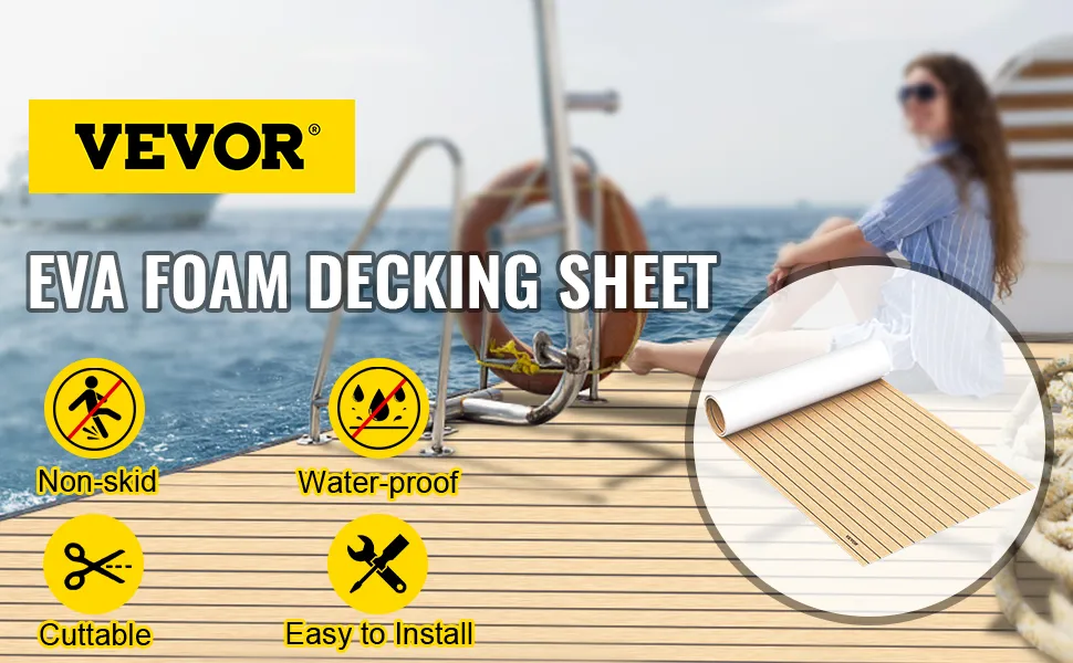 Esta es una lámina de cubierta de espuma EVA de alta calidad para uso en cubiertas de botes o pisos de yates. Adopta pegamento autoadhesivo, diseño de pelar y pegar para una fácil instalación. Patrón similar a la teca y superficie antideslizante, es fácil de combinar con su barco y proteger el suelo.