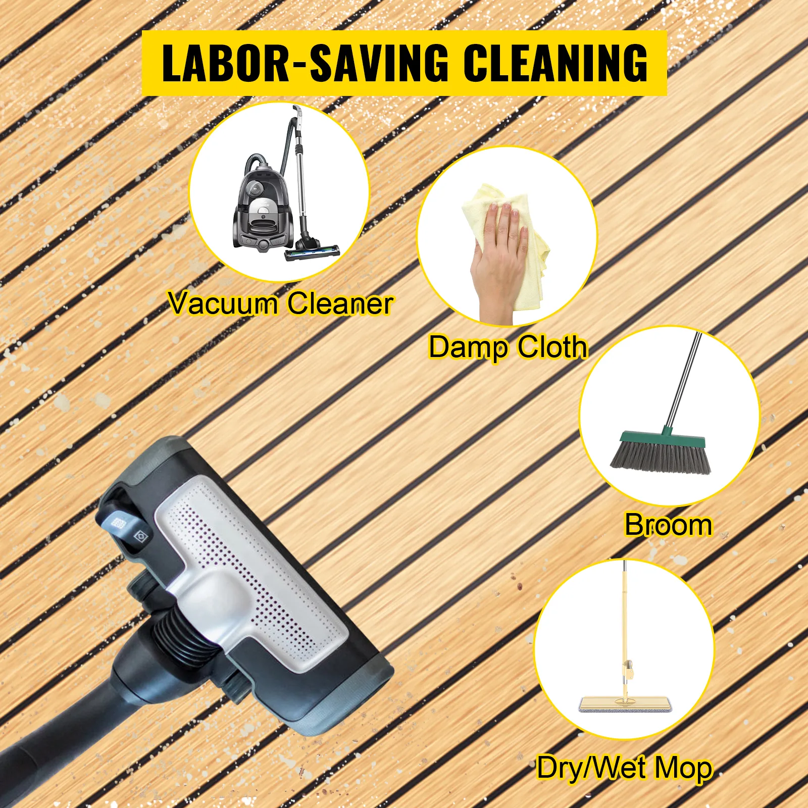 Aspirarlo regularmente. El suelo del barco está diseñado naturalmente a prueba de manchas. Puede limpiar la suciedad con un paño húmedo, no es necesario usar detergente para limpiar.