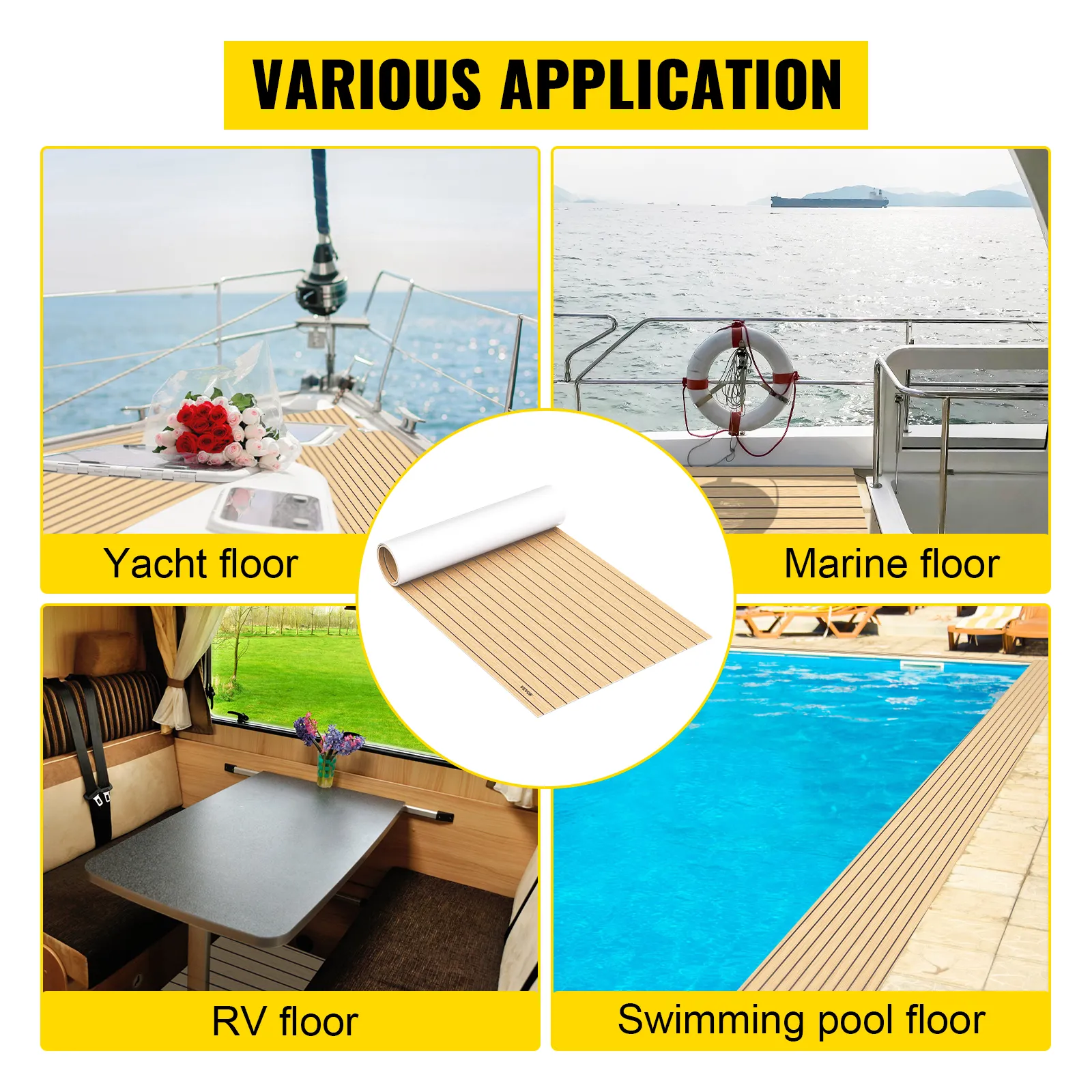 Este piso de teca para botes es un tapete de amplio uso adecuado para botes marinos, yates, limusinas, vehículos recreativos, piscinas, etc. Hará que su bote sea hermoso y cómodo.