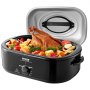 Horno asador eléctrico VEVOR, 24 cuartos de galón, para pavo, con tapa autohumectante, 1450 W, con función de descongelar y mantener caliente, temperatura ajustable, bandeja y rejilla extraíbles, apto para pavos de hasta 12.7 kg (28 libras), negro