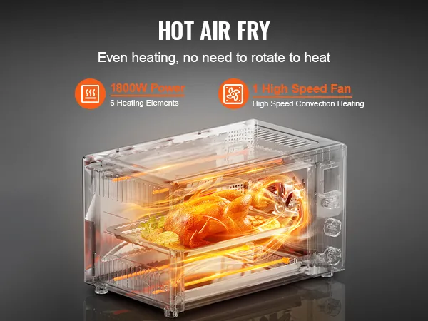 Con 1800 W de potencia, este horno calienta de forma eficiente y uniforme. Disfruta de una experiencia de sabor deliciosa con alimentos dorados, crujientes y tiernos.