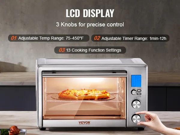 Multifunción 13 en 1: El horno freidora de aire multifuncional VEVOR ofrece versatilidad con 13 funciones de cocción. Permite hornear pan, preparar pasteles y postres, asar carnes y pollo, freír al aire y mucho más. ¡Disfruta de la facilidad y la diversión de cocinar en casa!