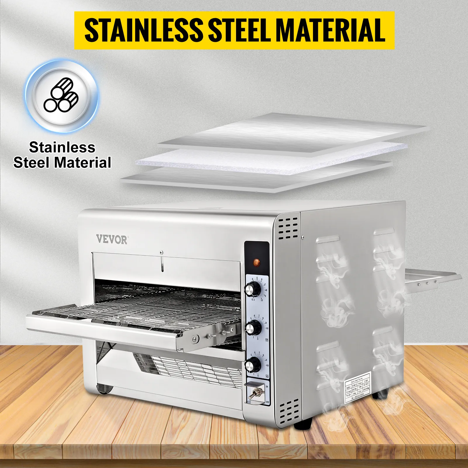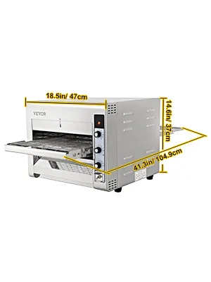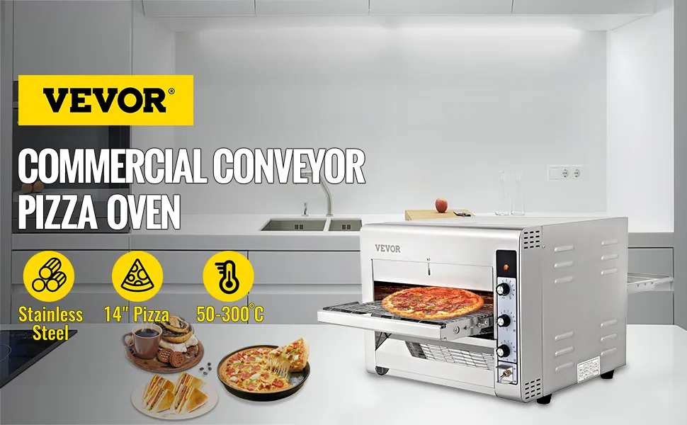 VEVOR Transportador Comercial Pizza Horno, Cinturón Ajustable Calor y Velocidad Acero Inoxidable Encimera Cocina Tostador Horno con 50-300 °C /122- 572 °F Rango de Temperatura para Panadería Restaurante Occidental.