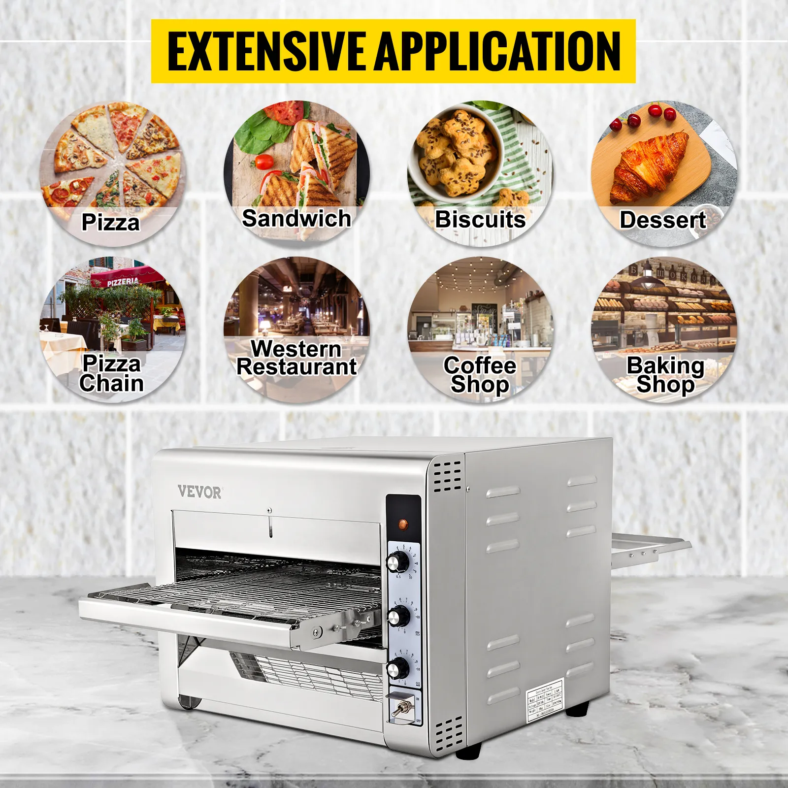 Es la única opción para cocinas comerciales, panaderías y pizzerías. Puede hornear deliciosas pizzas rápidamente para sus necesidades de catering. También se puede usar para hacer galletas, pan, sándwiches y otros bocadillos.
