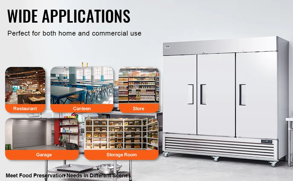 Ya sea chef de restaurante, dueño de una tienda o cocinero casero, nuestro refrigerador comercial satisface todas sus necesidades. Desde restaurantes y tiendas hasta garajes y trasteros, ofrece la solución perfecta para conservar la frescura de sus alimentos en diversos entornos.