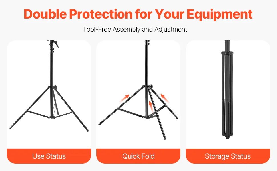 Fácil de transportar, listo para usar: este soporte de luz de estudio cuenta con una estructura desmontable, lo que facilita su transporte. Garantiza ajustes sin herramientas y una portabilidad sin esfuerzo, ideal para fotógrafos y videógrafos en movimiento