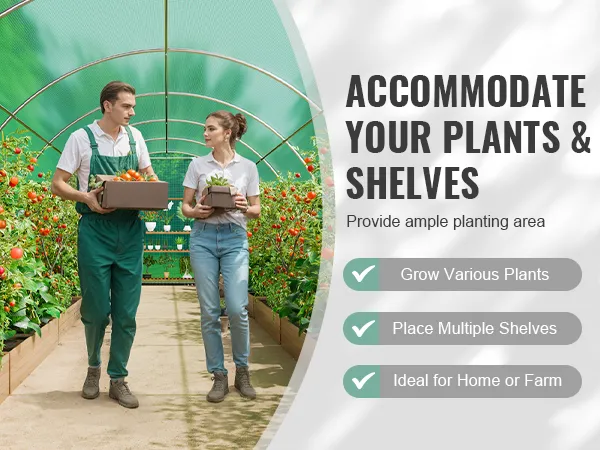 El generoso tamaño de este invernadero de aro permite la plantación libre de varias plantas y la fácil colocación de múltiples estantes. Ya sea para jardinería doméstica o para una pequeña granja, satisface todas sus necesidades de plantación.