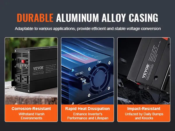 Mejore su experiencia energética con nuestro elegante y robusto inversor de energía revestido en una aleación de aluminio de primera calidad. No solo resiste la corrosión y la oxidación, sino que también destaca por disipar el calor de manera eficiente, lo que garantiza que su energía fluya de manera fluida y confiable.