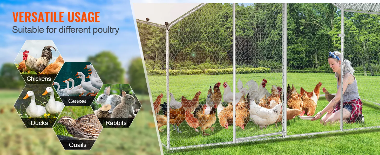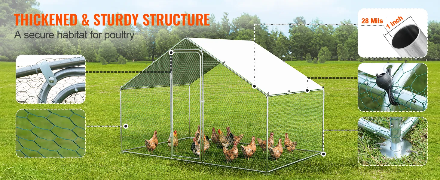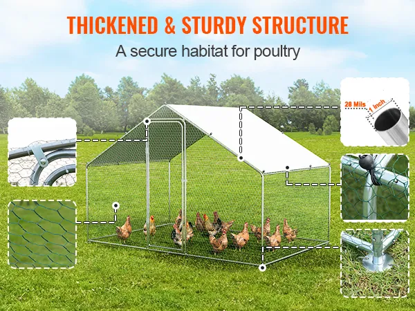 Nuestro gallinero de metal está hecho de tubos de acero galvanizado, probados contra niebla salina para evitar la oxidación. Proporciona un hogar seguro y acogedor de alta calidad para sus gallinas, sin importar si llueve o hace sol.