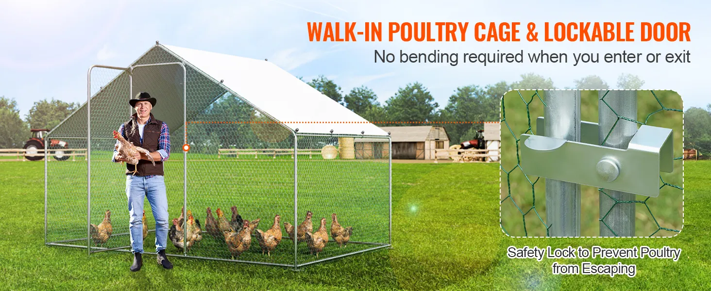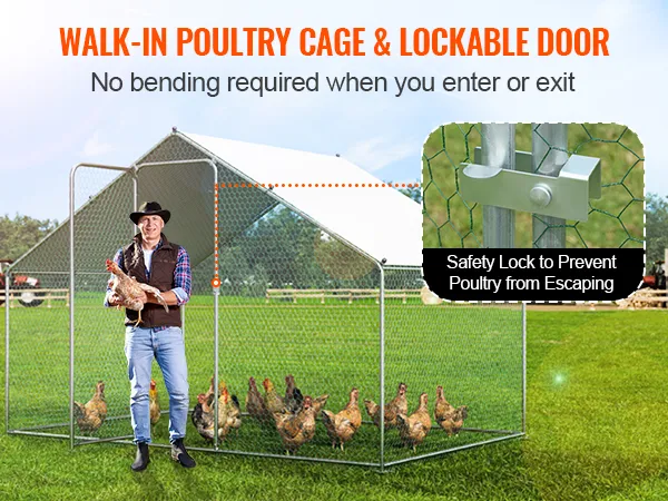 Con puertas espaciosas, el gallinero de metal permite un fácil acceso sin agacharse. El diseño de bloqueo seguro evita que las aves se escapen, lo que hace que sus tareas agrícolas sean sencillas.