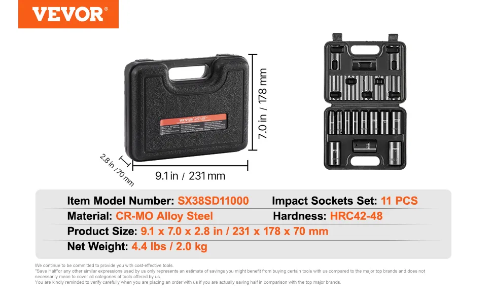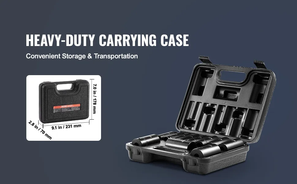 ¿Buscas un juego de vasos de impacto profesional y portátil? El juego de vasos de impacto de 11 piezas de VEVOR ofrece una gama completa de herramientas, especialmente adecuadas para reparar diferentes marcas de automóviles.