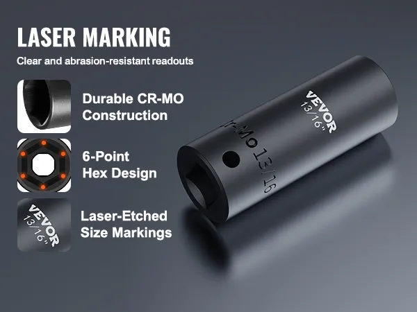High Torque: Distinguished by its hexagonal drive design, which sets it apart from traditional designs lacking rounded corners, this socket tool set significantly reduces pressure exerted on fasteners during impact. As a result, it minimizes wear and effectively prevents bolt rounding and stripping.