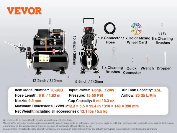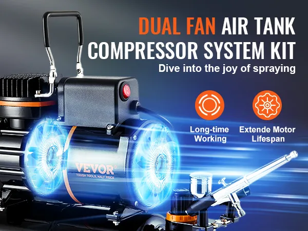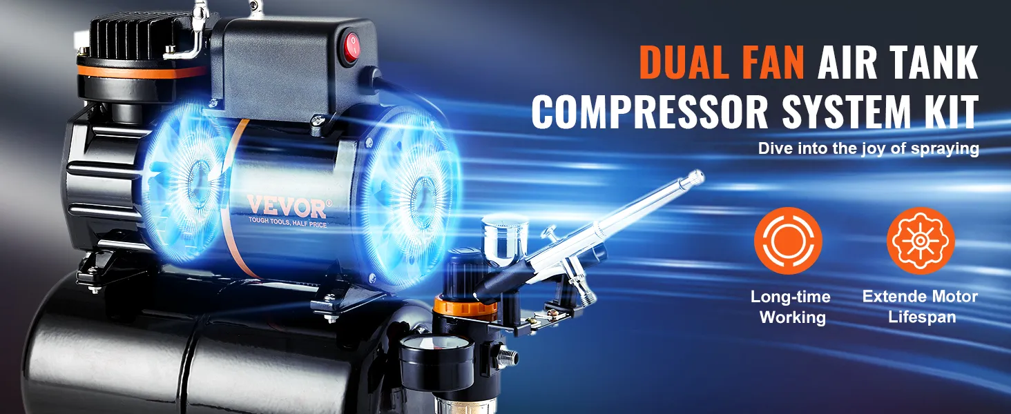 VEVOR Airbrush Kit, Dual Fan Air Tank Compressor System Kit with 3.5L Air Storage Tank, Air Brush Set with 0.3 mm Tip Airbrush, Holder, Color Mixing Wheel, Cleaning Brush Set, Art Nail Cookie Tattoo