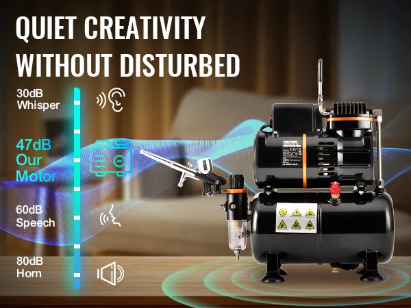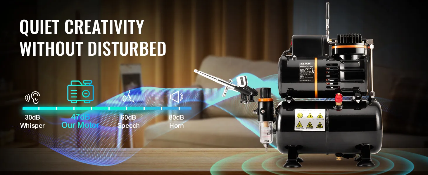 The high-quality motor of our air brush set allows it to run steadily at a low noise level of 47dB. You can focus on your creations in a quieter and more comfortable working environment, making your work more efficient.