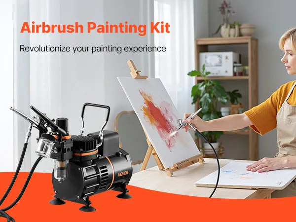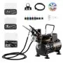 Kit de aerógrafo VEVOR de 1/6 HP con compresor, 3 aerógrafos profesionales de doble acción con 3 puntas, manguera, pintura acrílica, 2 ventiladores, silencioso, para decoración de tartas, modelismo y manicura.