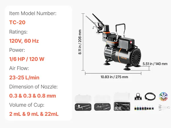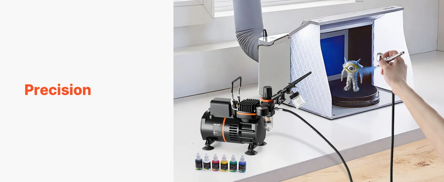 Atomización de precisión para acabados impecables: equipado con boquillas de 0,3 mm, 0,3 mm y 0,8 mm, este kit de aerógrafo le permite crear líneas ultrafinas, pintar áreas grandes más rápido y lograr resultados suaves y profesionales sin manchas ni obstrucciones.