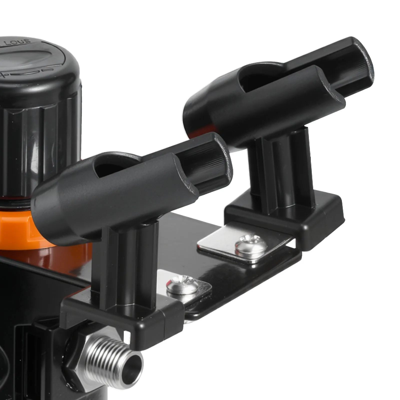 El soporte dedicado del kit de aerógrafo mantiene su aerógrafo seguro y organizado, evitando configuraciones desordenadas y garantizando un espacio de trabajo ordenado.