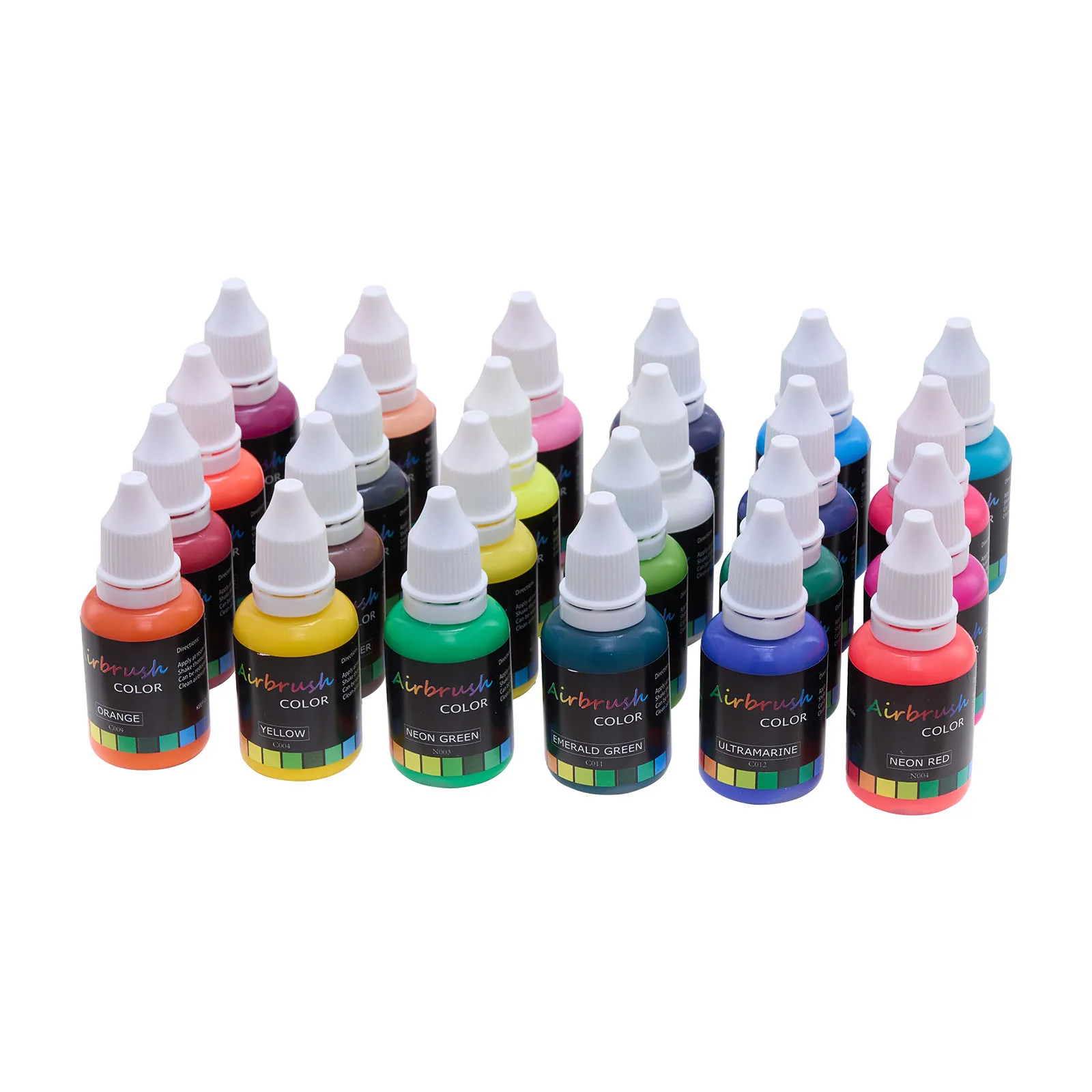 El kit de aerógrafo con compresor incluye 24 pinturas esenciales con tonos intensos, ideales para mezclar colores y experimentar con varios estilos.