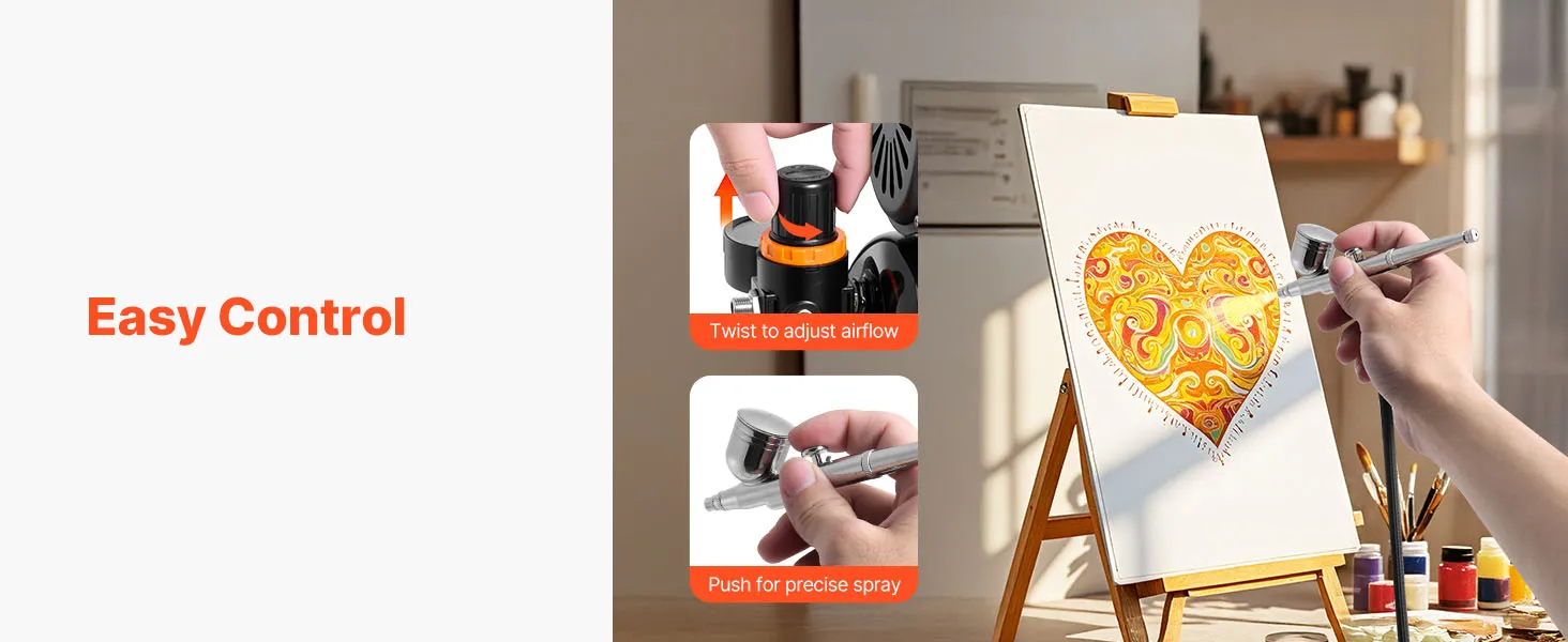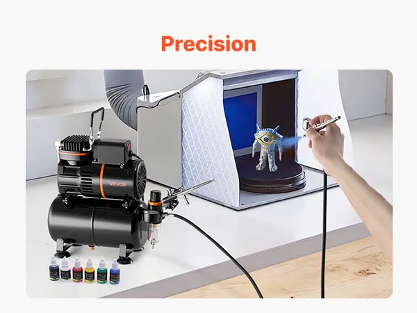 Fácil control, diseño ideal para principiantes: Este kit de aerógrafo con compresor incluye un aerógrafo de doble acción para controlar el aire y la pintura de forma independiente. La perilla de presión ajustable garantiza una pulverización suave y uniforme, fácil incluso para principiantes.