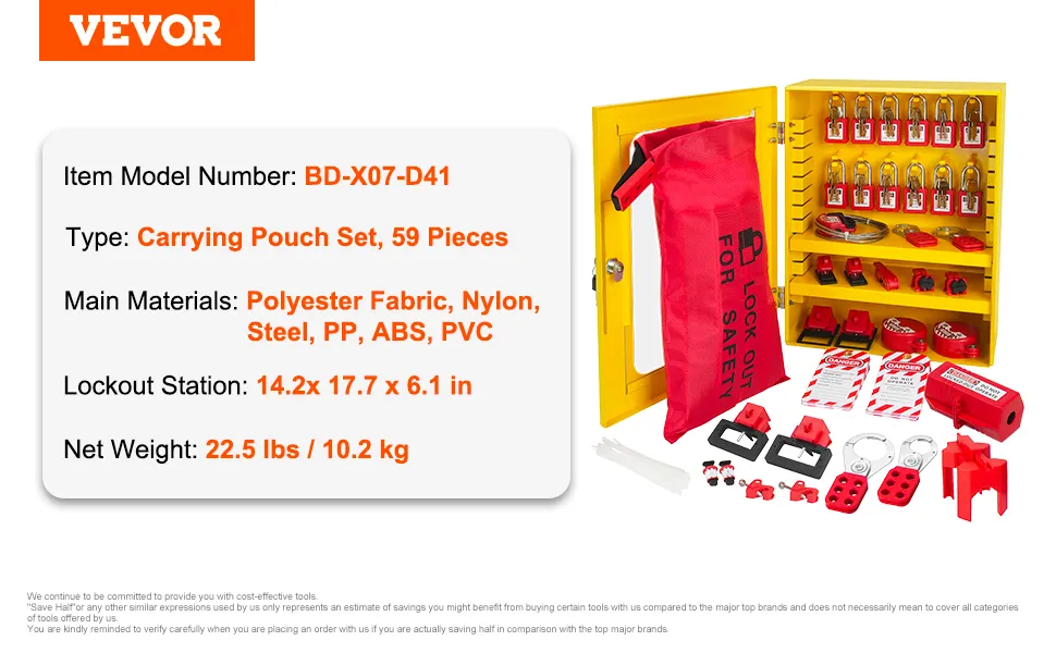 VEVOR Kit de Etiquetado de Bloqueo Eléctrico, Estación de Etiquetado de Bloqueo de Seguridad de 59 Piezas con Candados, Cerrojos, Etiquetas, Bridas, Bloqueo de Enchufe, Bloqueo de Disyuntor, Caja