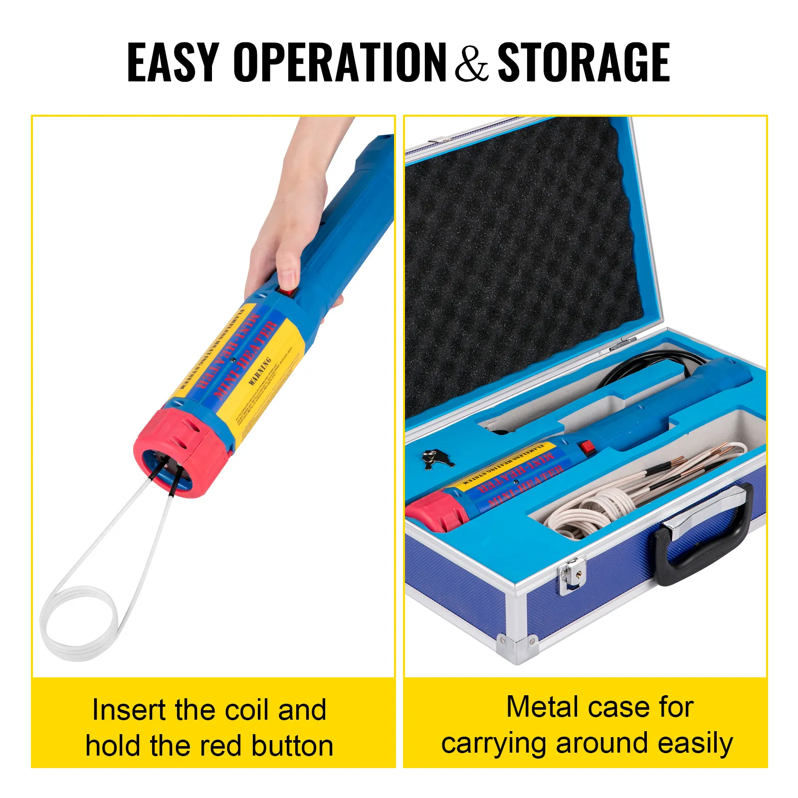 Almacenamiento conveniente: viene con una caja de almacenamiento de metal para todo el kit de calentador de inducción completo, para que pueda organizar todas las cosas ordenadamente y transportarlas con facilidad.