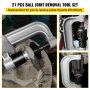 Usando diferentes adaptadores y tubos de este conjunto de herramientas para rótulas, puede quitar piezas de prensa, incluidas rótulas, juntas en U, pasadores de anclaje de freno y muchas más con facilidad.